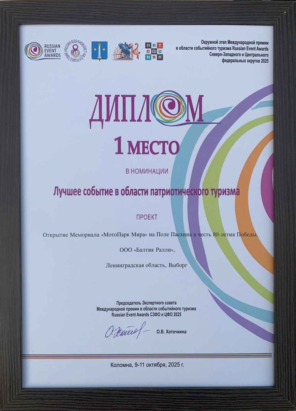 Мотофестиваль "Балтик Ралли" занял 1 место Окружного этапа Международной премии Russian Event Awards в номинации «Лучшее событие в области патриотического туризма» с проектом: Мемориал «МотоПарк Мира на поле Пасхина»!